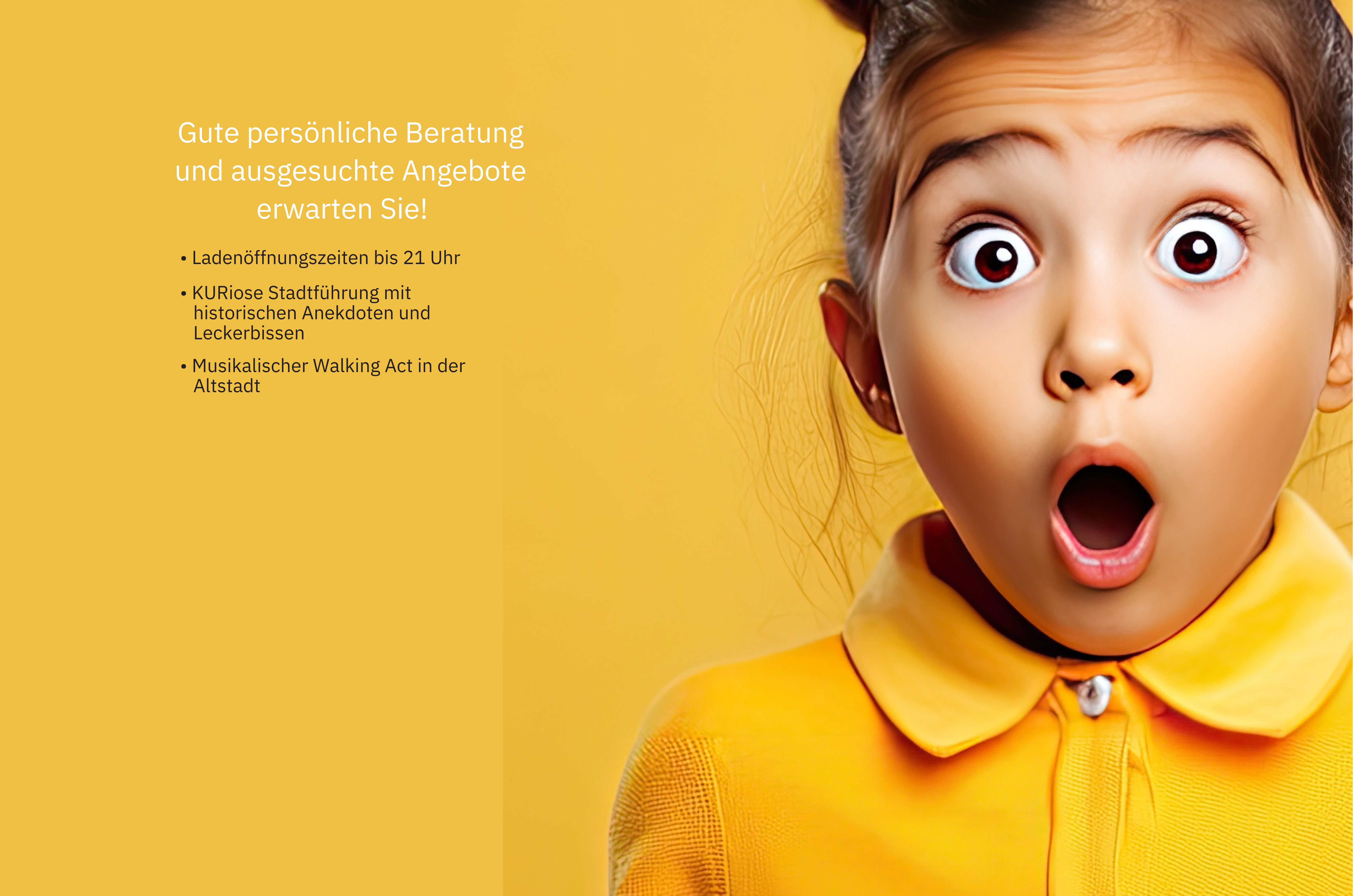 Mit verlängerten Ladenöffnungszeiten (bis 21.00 Uhr), musikalischer Unterhaltung auf dem Marktplatz und vielem mehr bietet der KURiose lange Donnerstag die Gelegenheit, nach Feierabend einmal im Monat entspannt zusammenzukommen, um das Angebot des Einzelhandels in der historischen Altstadt auf andere Art und Weise kennen zu lernen. Dafür lassen sich die Geschäftsleute spezielle Aktionen einfallen. Für Essen und Trinken ist ebenfalls gesorgt, zahlreiche Gastronomien beteiligen sich und erwarten Sie bereits!