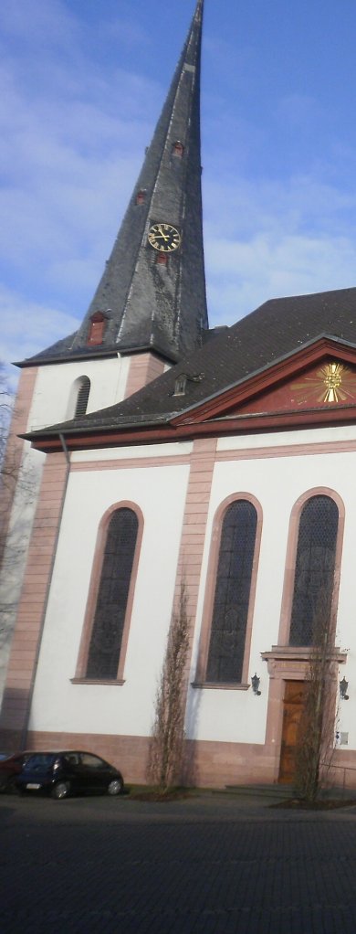 bis 1781 erbauten heutigen Kirche St. Peter und Paul weichen musste. Diese wurde nach den Plänen des Weilburger und Dillenburger Baumeisters Johann Friedrich Sckell errichtet. Der Besucher ist beim Betreten der Hallenkirche, die in der Übergangszeit