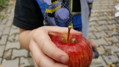 Etwa 400 fleißige Kinder der Bad Camberger Kindertagesstätten und Grundschulen ernten auf der großen städtischen Streuobstwiese in Würges die Äpfel, die im Amthof-Innenhof an kleinen Apfelpressen frisch gekeltert werden. Den Saft verköstigen Groß und Klein direkt vor Ort. Über 500 Kinder und ihre Betreuer/innen und Lehrer/innen werden den Innenhof bevölkern und sich die zahlreichen Apfel-Leckereien schmecken lassen.