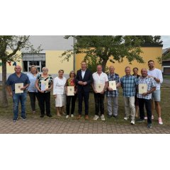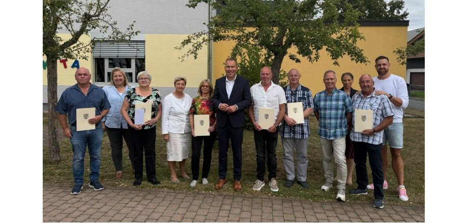 Stefan Hampel (Forst, 40-jährige Tätigkeit), Helmut Kulhanek (Bauhof, 40-jährige Tätigkeit und Ruhestand), Marianne Krauss (Kindertagesstätte „Kinderoase“, Ruhestand), Lydia Wottschel (Kita „Kinderoase“, Ruhestand), Petter Löffler (Hausmeister Erlenbachhalle, Ruhestand) und Wolfgang Blieder (Forst, Ruhestand).