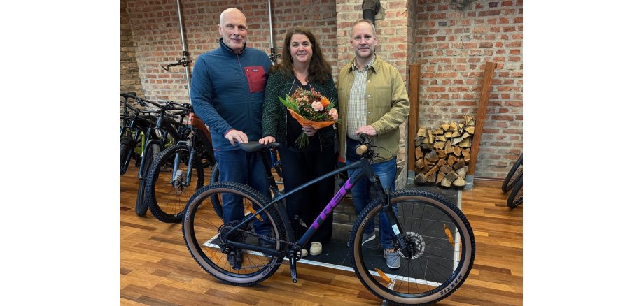 Die glückliche Gewinnerin nahm nun in Bad Camberg ihren Preis in Martin’s Radlwerkstatt entgegen, den Inhaber Martin Uhl und Bad Cambergs Kurdirektor Michael Sinn im Namen der organisierenden Kommunen überreichten. Michael Sinn drückte Mareike Kruse dabei seinen „Respekt und Glückwunsch“ für die Leistung aus, die komplette Runde absolviert zu haben und wünschte ihr viel Spaß mit dem neuen Fahrrad.