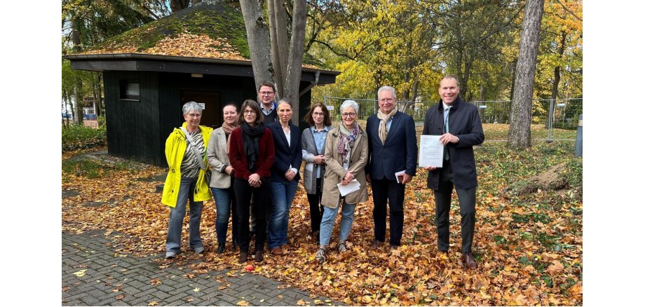 Bürgermeister Daniel Rühl nimmt Bewilligungsbescheid für Kiosk im Kurpark entgegen