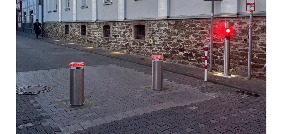 Poller rund um den Marktplatz werden anlässlich der großen Weihnachtsverlosung hochgefahren