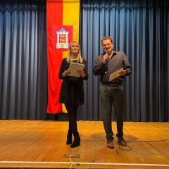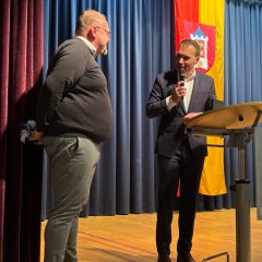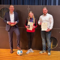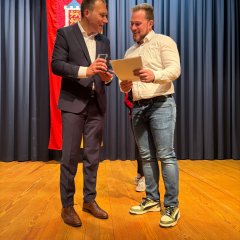 „Standing Ovations“ gab es dann zum Abschluss der Veranstaltung, als Bürgermeister Daniel Rühl die Sonderehrung zum „Funktionär des Jahres“ durchführte: Der Ehrenpreis ging an Holger Parakenings, den „Mister Badminton“ der TG Camberg. Seit nunmehr zehn Jahren führt er die Badminton-Abteilung der TG, holte Länderspiele nach Bad Camberg und ist seit 2023 auch Vorsitzender des Bezirksverbandes. Zudem ist er im nationalen Verband bei der Organisation von Großveranstaltungen eingebunden. Daniel Rühl in seiner Laudatio: „Holger Parakenings verkörpert, was ehrenamtliches Engagement ausmacht: Leidenschaft für den Sport, Einsatz für die Gemeinschaft und die Fähigkeit, Menschen zu begeistern und zusammenzuführen. Er ist ein Vorbild für ehrenamtliches Engagement und ein Gewinn für unsere Sportgemeinschaft.“