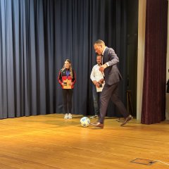Nicht ganz so treffsicher zeigte sich Oliver Geis an der Torwand: Der Sportschütze blieb einmal bei seinen vier Versuchen erfolgreich – ebenso wie Jana Hofmann. Im „Triell“ blieb Bürgermeister Daniel Rühl torlos. Allerdings hatte er nun auch wirklich kein passendes Schuhwerk am Fuß.
