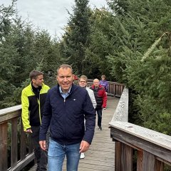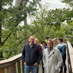 Zum Abschluss des Besuchs durften die Gäste aus Bad Sulza noch ein Highlight Bad Cambergs kennenlernen: den Baumwipfelweg. „Das ist eine fantastische Attraktion, um die Bad Camberg sicherlich weit über die Region hinaus beneidet wird“, drückte Dirk Schütze seine Begeisterung aus. „Unsere Partnerstadt hat schon einiges zu bieten“, ergänzte Bad Sulzas Bürgermeister.