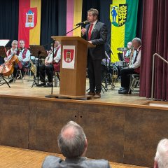 Rühls Amtskollege aus Bad Sulza, Dirk Schütze, unterstrich diese Aussage: „Was unsere Städte seit nunmehr fast 35 Jahren verbindet ist wichtiger, als das, was Ost und West trennt. Irgendwann muss diese Diskussion mal beendet sein. Umso wichtiger ist es, dass wir diese Städtepartnerschaften pflegen – gerade in der derzeitigen politischen Lage.“ Schütze erinnerte daran, was den Bürgern der ehemaligen DDR alles nicht möglich war. „Die Menschen hatten es satt und forderten Reisefreihet, freie Wahlen, Redefreiheit und keine Bespitzelung durch das Ministerium der Staatssicherheit.“ All das habe die Wiedervereinigung ermöglicht. „Wir feiern einen Tag, der viele Hoffnungen barg und der zeigte: Einheit ist möglich – durch Wandel, durch Mut und durch gemeinsame Gestaltung. Es stellt sich die Frage: Wie nutzen wir diesen Tag als Chance?“