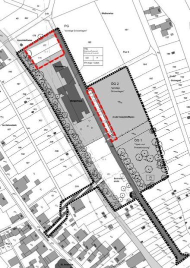 Ausschnitt genordet, ohne Maßstab, Änderungsbereiche rot umrandet
