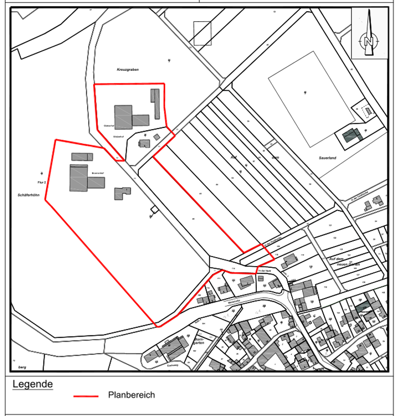 Die Lage der Abgrenzung hat keine Rechtsverbindlichkeit und kennzeichnet nur die Lage des Planungsbereiches.