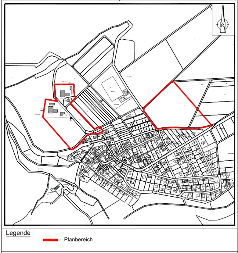Im Rahmen der Flächennutzungsplanänderung wird eine aktuell rechtskräftige Siedlungserweiterungsfläche „Wohnbaufläche Planung“ östlich der Ortslage beiderseits des Hartweges im Zuge der Planung zurückgenommen, da diese aufgrund verschiedener, nach Aufstellung des Flächennutzungsplans in Kraft getretener, gesetzlicher Vorgaben, aus denen sich neue Voraussetzungen ergeben haben, nicht mehr entsprechend entwickelbar ist. Gleichzeitig wird eine Siedlungserweiterungsfläche entsprechend der avisierten Planung westlich der Ortslage, im Bereich und unterhalb der Aussiedlerhöfe Brunnenhof und Glatzerhof ausgewiesen.